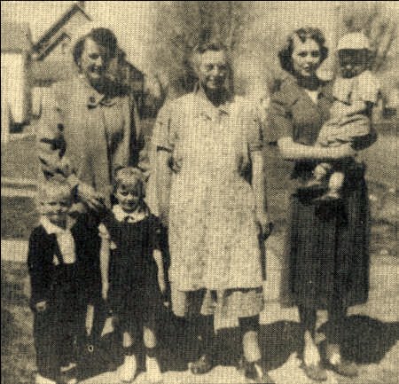 Elizabeth Langreck, center, with daughters, Adeline Pollnow, left and Roceil Kiefer, right, holding son Ronnie Kiefer. Grandchildren, Kevin and Kaila Langreck, standing in front row. Photos contributed by Larry and Buddy Langreck) |