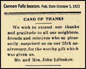 John Lilleskov (20 May 1888, Zumbrota, MN- Dec 1980, Hennepin Co., MN), son of