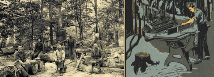 Silas Woodman, Nathen Fry, Ole Elton, and Henry Vanderlope, were all busy cutting Wood with Jack Hatfield’s steam Wood machine.