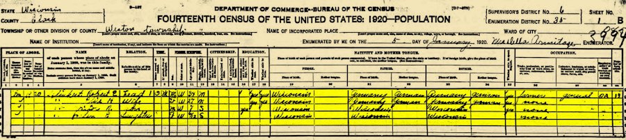 1920 Federal Census, Weston, Clark Co., Wisconsin