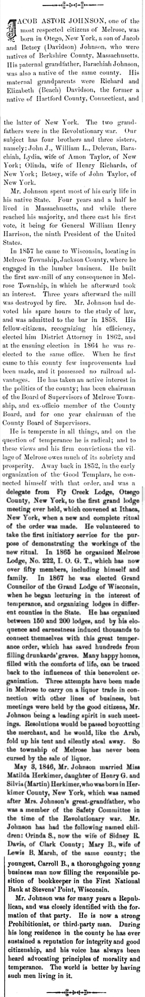 ----Source: 1891 Biographical History of Clark & Jackson Counties, WI; Chicago: THE LEWIS PUBLISHING COMPANY, Page 302-303.