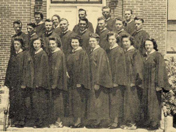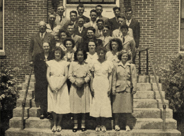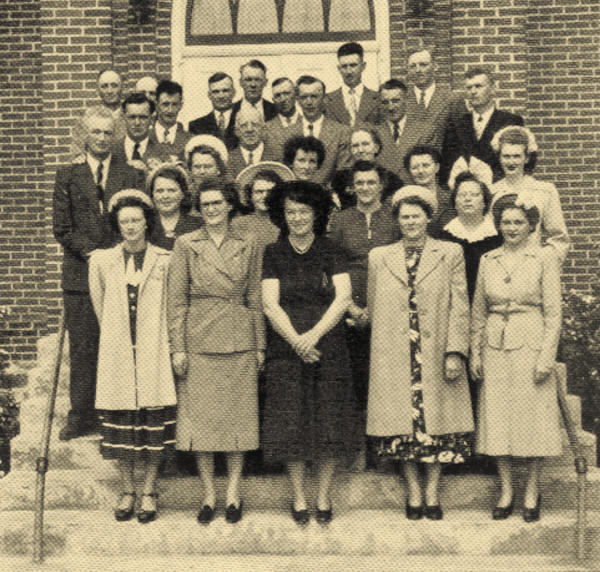 3rd Row: Rev. J.C. Klingeberger, Mrs. Orlin Fravert, Larry Vollrath, Miss Gladys Kuester, Victor Irvine, Donald Decker.