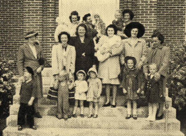1st Row: Mrs. Arthur Awe and Henry, Mrs. Clarence Meinhardt and Ronald, Mrs. Delmar Toburen and Judy and Karen, Mrs. Eldore Humke and DaNeil, Mrs. Elmer Kuester and Rebecca, Mrs. Arthur Wehrman and Barbara.