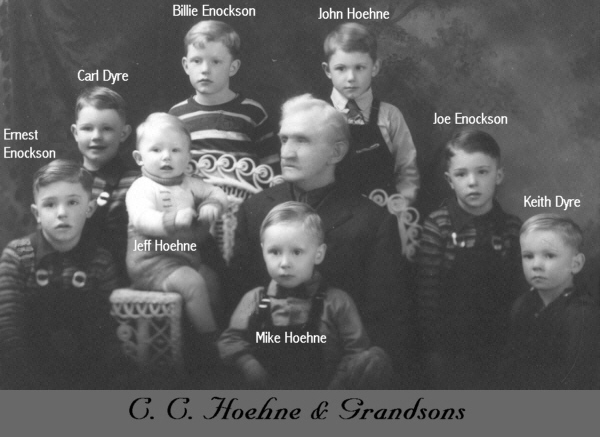 Pallbearers were six grandsons, John and Jeff Hoehne Joe and Bill Enockson and Karl and Keith Dyre.