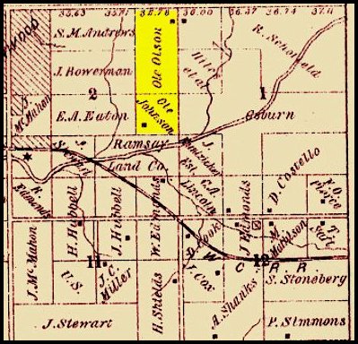 1893 Plat Map showing the Ole Johnson & Ole Olson Land