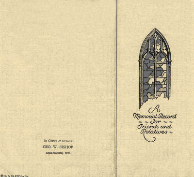 Out of town persons at the services included Mr. and Mrs. Daniel Wager, Mr. and Mrs. Emil Enneper, Mr. and Mrs. Albert Enneper, Mr. and Mrs. August H. Enneper, Mr. Emil Enneper Sr., Mrs. Fred Brockman, all of Brillion, Wis. Mr. and Mrs. Chales Kraatz and daughter Charlotte of Fond du Lac, Wis. Mrs. Selena Baldwin and Arthur Gilbert of Owen.