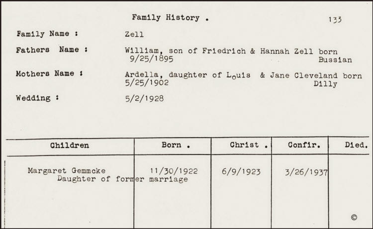 #3. The Family History #133 seems to be in error. Not sure who supplied the info. I believe it is for the Wm Zell family.