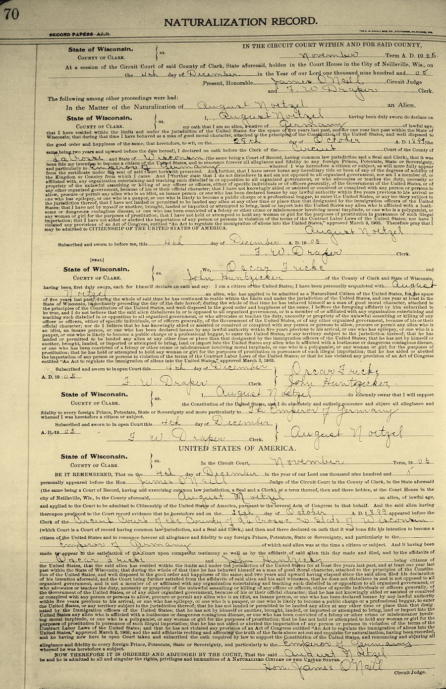 Mr. Noetzel was born in (Montroy) Germany Dec. 1, 1868. He received his education