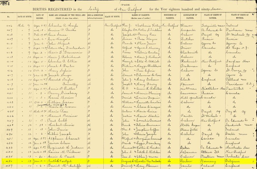 old immigrate from Belgium in 1893)