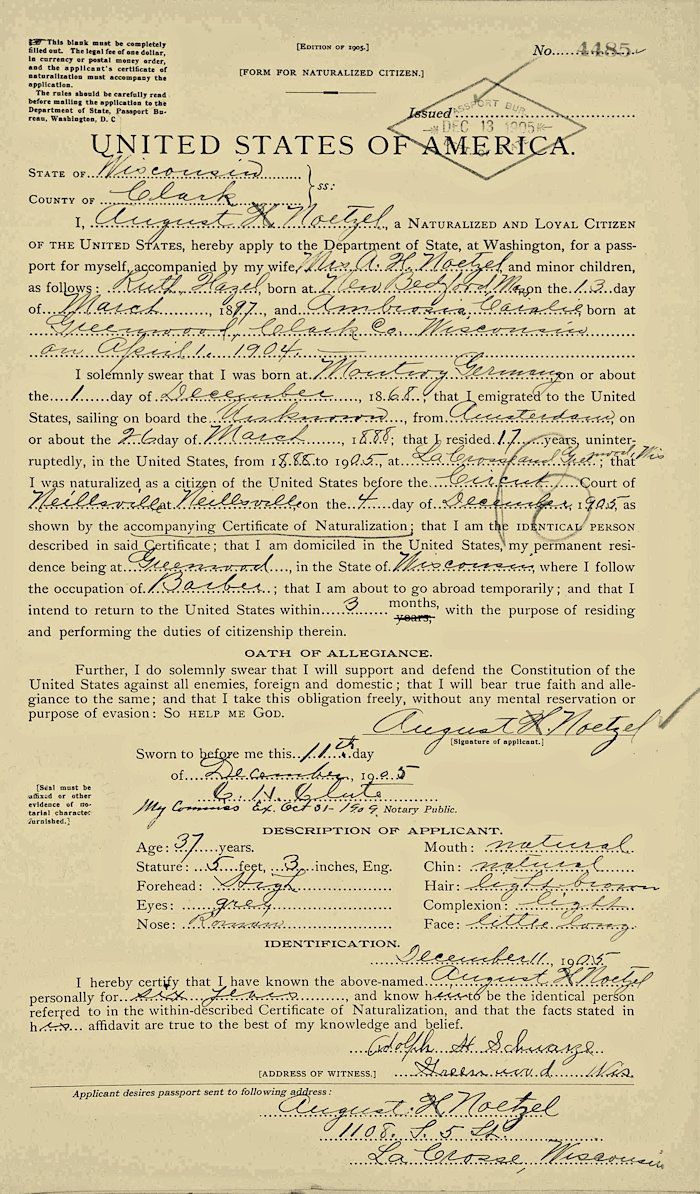 Father: August H. Noetzel, born in Germany