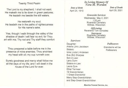----Source: Tribune-Record-Gleaner (Clark County, Wis.) 05/02/2001, Judy (Marden) Hansen Family Records