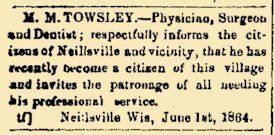 Darlington, La Fayette Co., Wis. of consumption, Dr. M. M. Towsley,