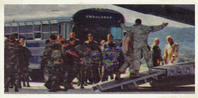 A medical evacuation bus is offloaded at the Ramstein Air Base near Landstuhl. Wounded patients will be aeromedically evacuated on the awaiting C-17 Globemaster III and returned to the states to received further medical treatment. (Contributed photos)