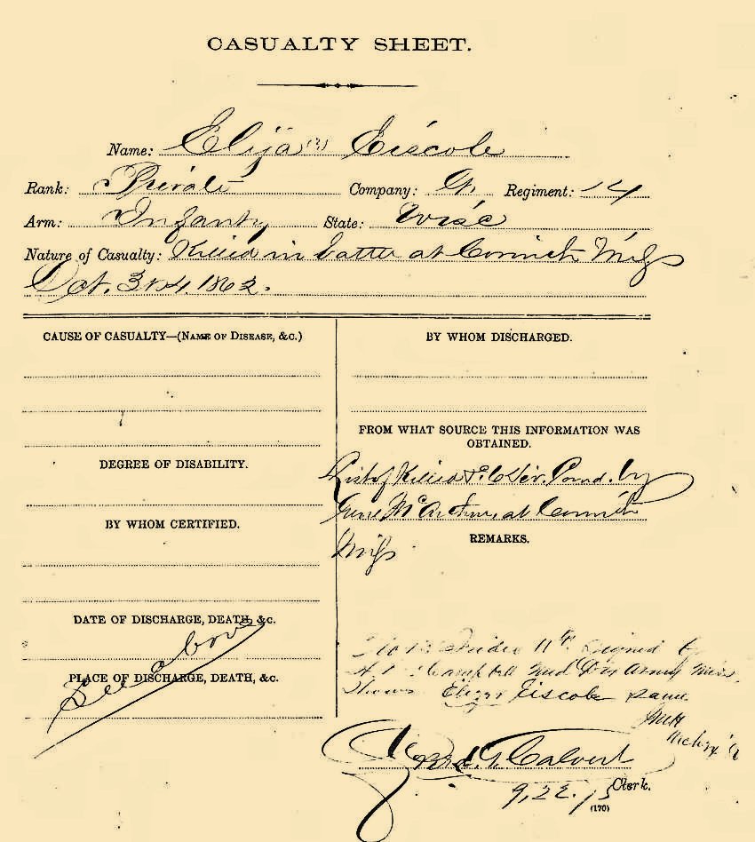 Nature of Casualty: Killed in battle at Corinth, Mississippi