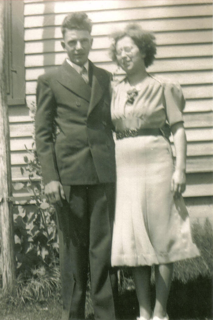 Leon Copet & Mae Bauer on their wedding day in Neillsville, June 22, 1939.