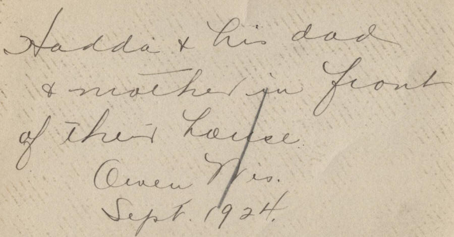 back it says "Hadda" and his mom and dad in front of their