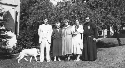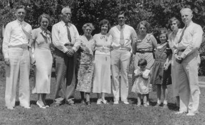 Gross & Leabel Family July 1935, Duluth, MN (Ted, Patty), Dad, Mom (Marie, Forrest), Gin, (Barbara, Alma, Bill Haake)Snooney |