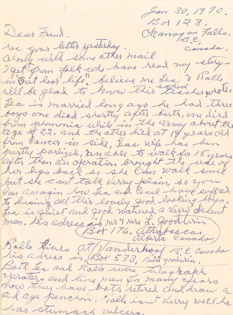 Olive Alta (Goodwin) Fredrickson's Letter, 30 Jan. 1970 [1] [2] [3] [4] [5] [6]