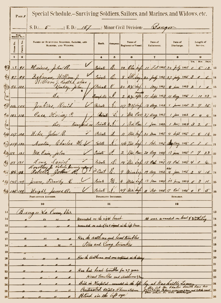 1895 WI Veteran Census, P.O. West Salem, La Crosse, WI