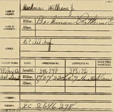Name: William J. Beckman State Filed: Kansas Widow: Catherine E. Beckman