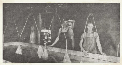 Gus Voight and brother-in-law, Ernest Fisher at the Spokeville Cheese Factory: Voight later worked as a cheese maker at the Pelsdorf Cheese Factory (later Schlinsog's) and Catlin Corner's Cheese Factory. Two of his brothers, Adolph and Carl, were also licensed cheese makers. Adolph owned and operated the Globe Factory on County "G", now the building of Hoppa's Corner Bar; the Day Corners Factory, south of Neillsville on Hwy 95 and now Jeff's Roadside; the Star Factory, now Lynn Cheese Factory. |