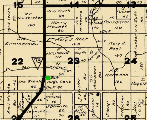 On the map above it is marked in green and sits between property owned by John Shanks and Hugo Lenz.