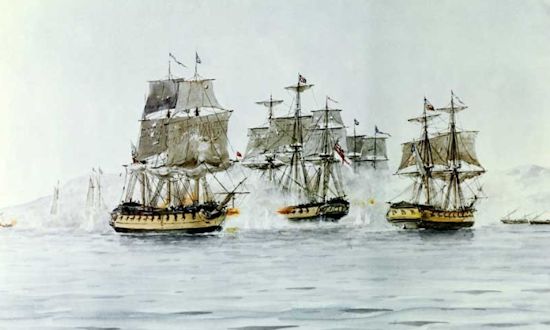 The British squadron weighed anchor as the sun came up on 11