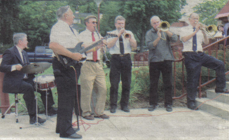 A jazz band played "When the Saints Come Marchin’ In" in tribute to Elmo Johnson as the former band leader’s casket was brought out of the Black River Falls Evangelical Lutheran Church July 24. Johnson was a well-known musician in the area for many years. (Photo by Pat McKnight/Banner Journal)