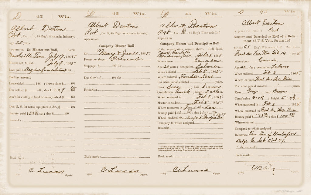 Enlisted in Company B, 3rd Infantry Regiment Wisconsin on 20 Aug