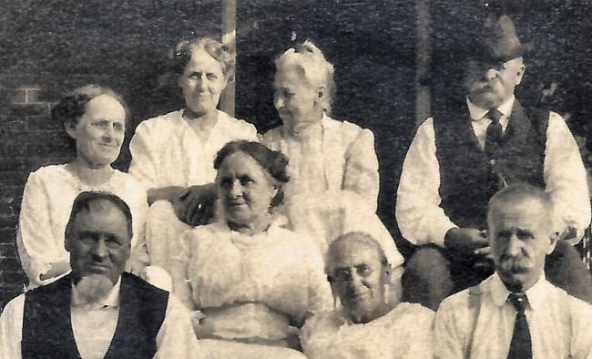 The photo above was labeled "Grandpa Braman with his brothers and sisters." If you've seen photos of Amos, it's pretty obvious which one he is (front row, left). Some of the others resemble older versions of people I have pictures of, but I can't identify them. Since most of his siblings remained in Michigan and New York, I don't know how they could have all gotten together. Also, if you look on the left side of the photo, there's a faucet (when did they install outdoor faucets??), so I'm wondering about the year. It looks like a very nice home. Would you or anyone in your organization recognize either the home or anyone in the photo? It would be fabulous if it had been taken in Neillsville and someone recognized the house! Karen Quackenbush (contributor) |