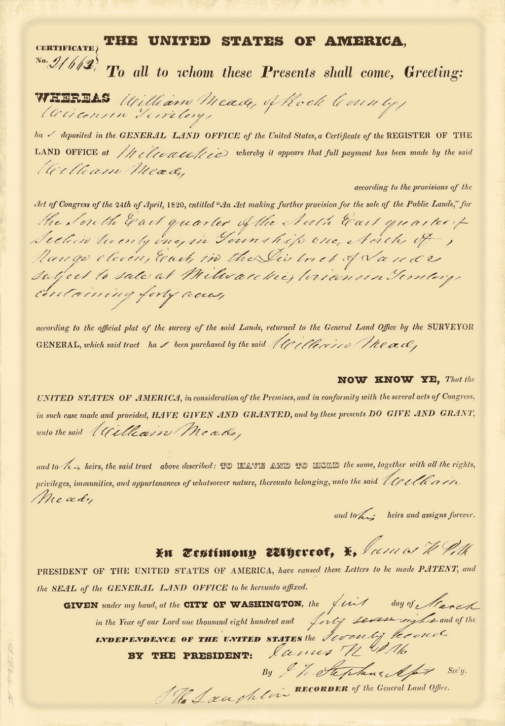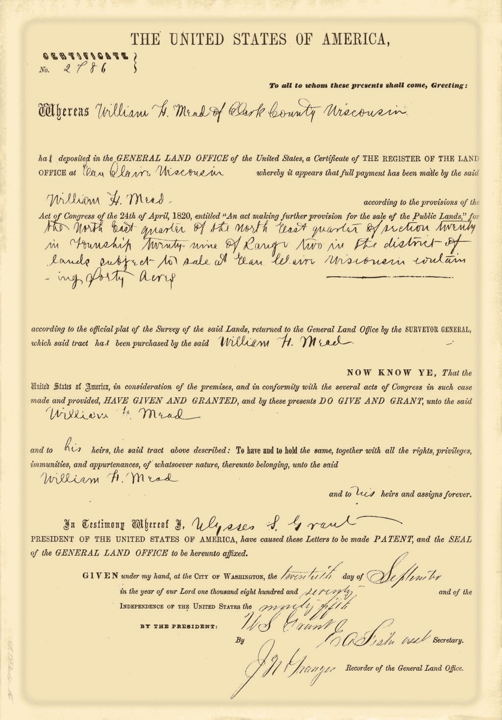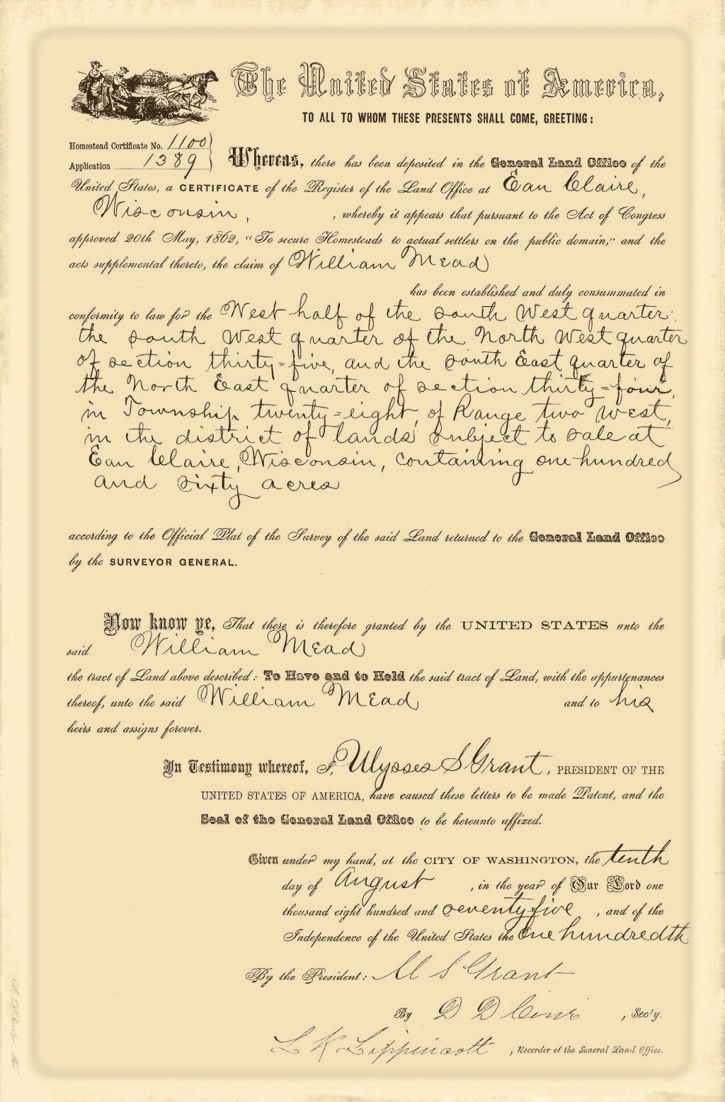 created Nov. 16, 1895. The Town of Mead was named for W. H.
