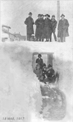 Taken in front of Esser's hall, 1917, the year of a heavy snowfall