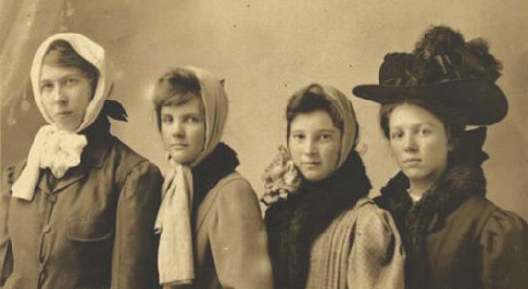 2. Elsie Maud Stoneburg, b. 3-Feb-1890 in Eaton, Clark, WI, d. 2-Aug-1967 in Cottage Grove, Lane, Oregon; Early Photo; Elsie with four friends;