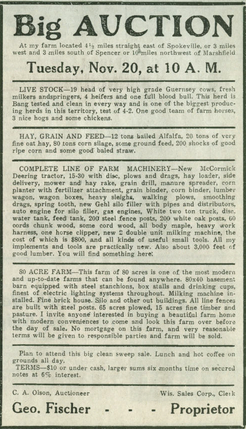 of the George Fischer farm in Spokeville, Loyal twp., Clark Co., Wisconsin.