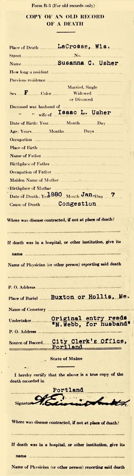 Susanna married Isaac Lane Usher in 1851, at age 27 at Connecticut.