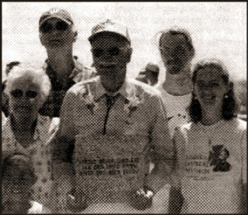 Harold Beyer poses with his Legacy Stone and a number of family members at the Legacy Stone ceremony.