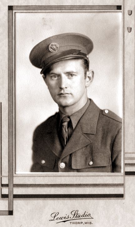 Cyril J. Alger was the son of Jay and Mayme Alger. He enlisted in the US Army as a Tec 4 in Company 3561 QM during WWII with a group from Thorp, Billy Huls, Willard Ustruck, and Murvil Vanderhyden amongst others. After basic training he was sent to Louisianna to master the art of cooking and was chosen to cook for the Army officers.