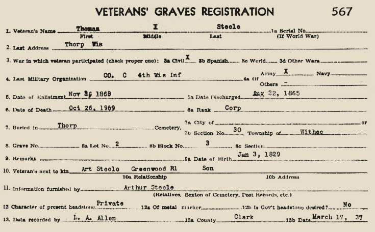 Township: E.D. 170 Thorp Township Veteran's Name: Thomas Steel