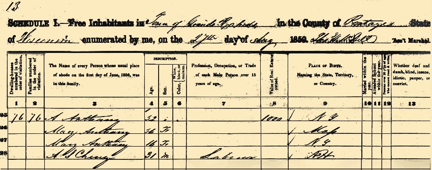 1860 Federal Census, Plover, Portage, Wisconsin, Page