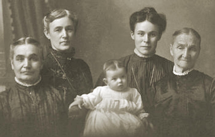 as follows: Elsie Frank 5 mo. Alice 21 Grandma Canfield 39 Grandma Johnson 59 Grandma Stark 79 Fred Frank