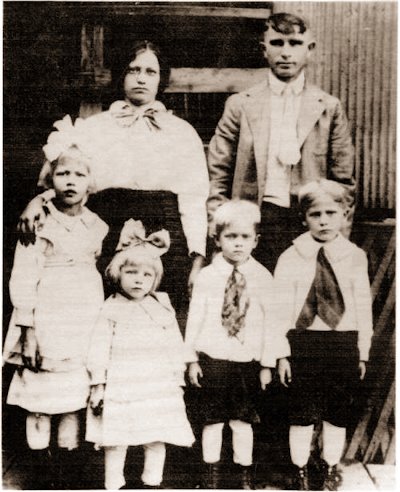 Stephen & John & Mary & Amelia (my grandma) & baby Frank who dead Dec 1908 Born