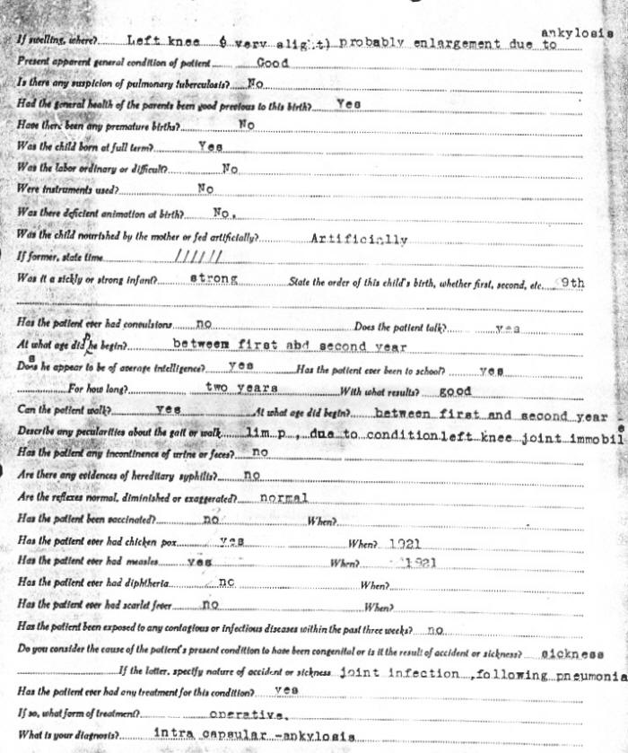 affected knee following the illness of scarlet fever. Medical Records: Page [1]
