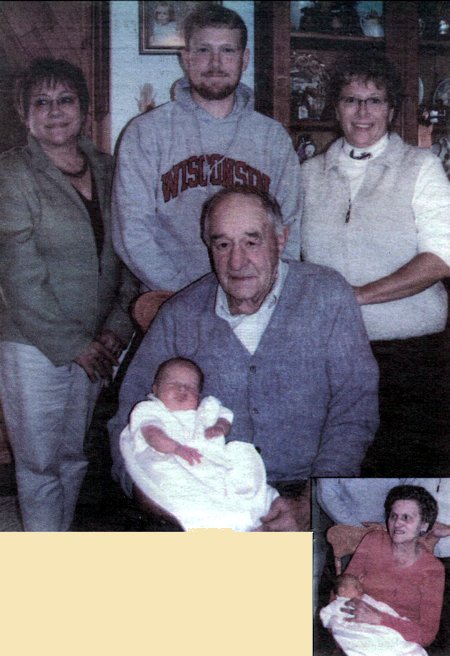 right) great-grandmother Pat Eisentraut, proud father Matt Strangfeld, and