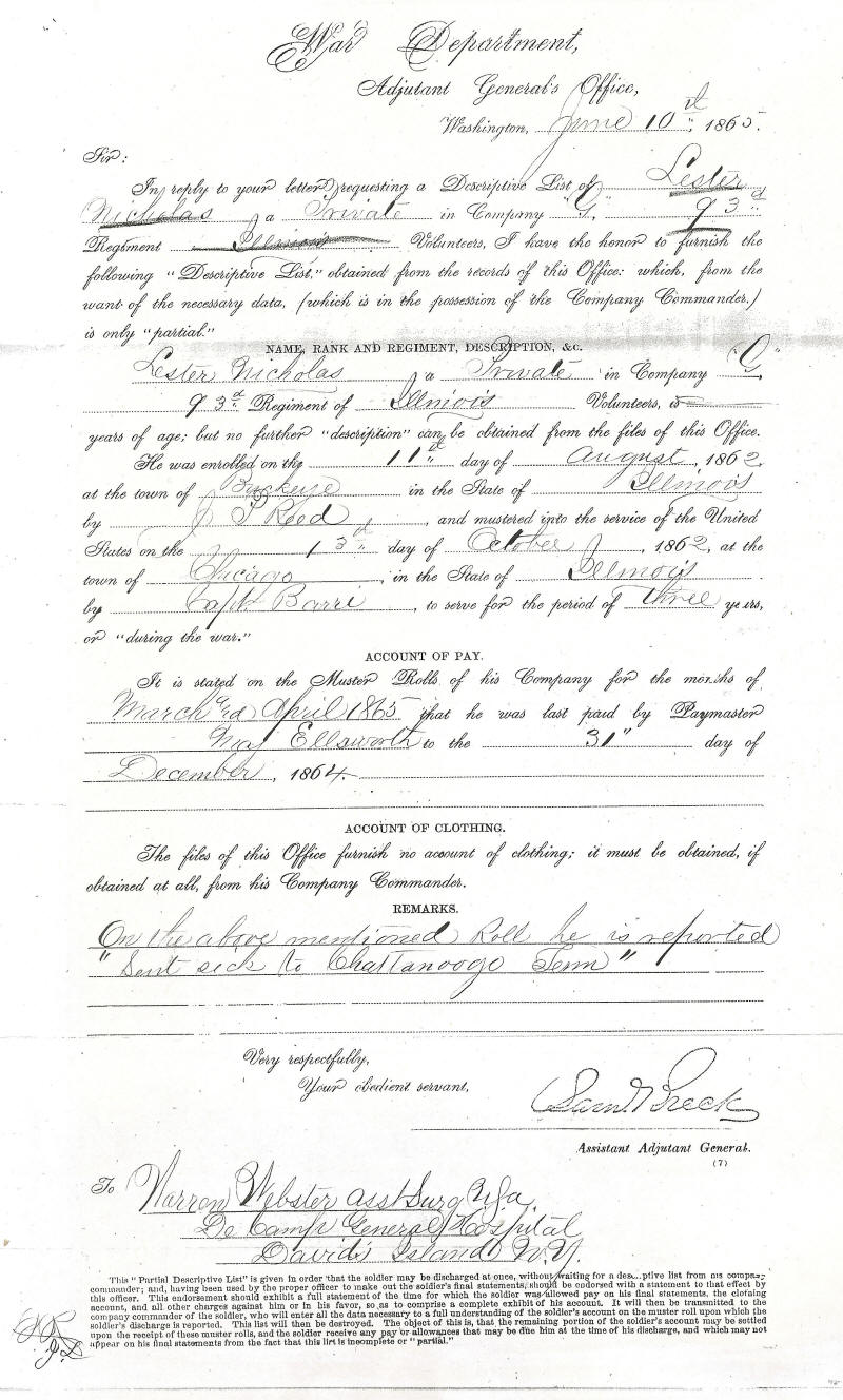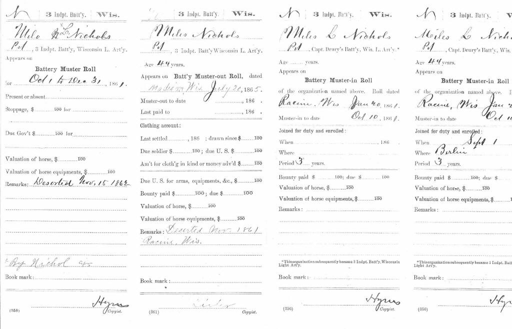 deserted his unit at Racine, WI. Like other deserters, he must have had