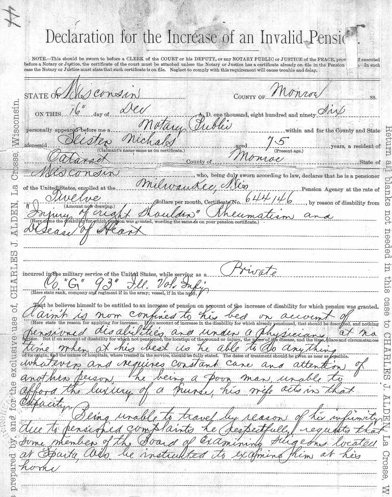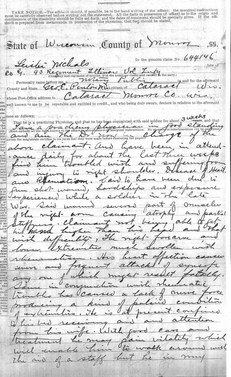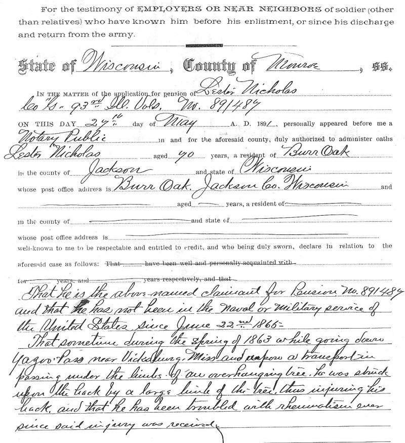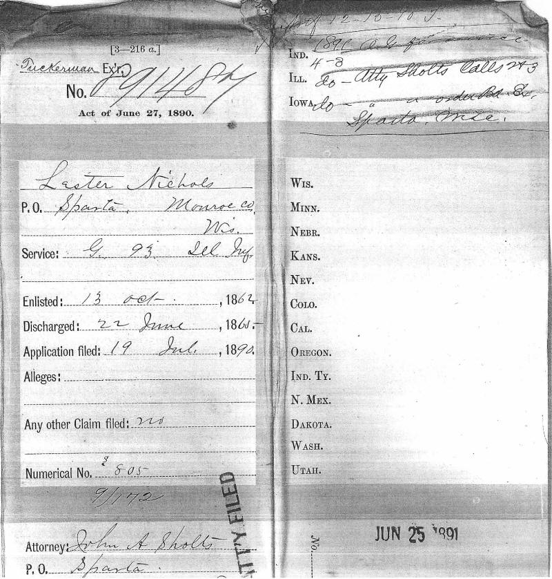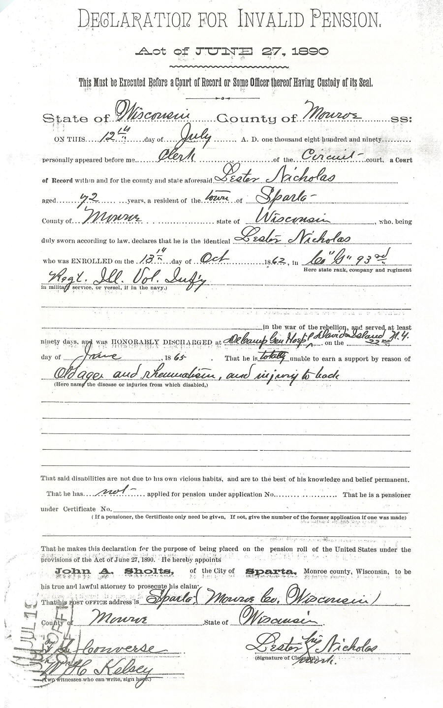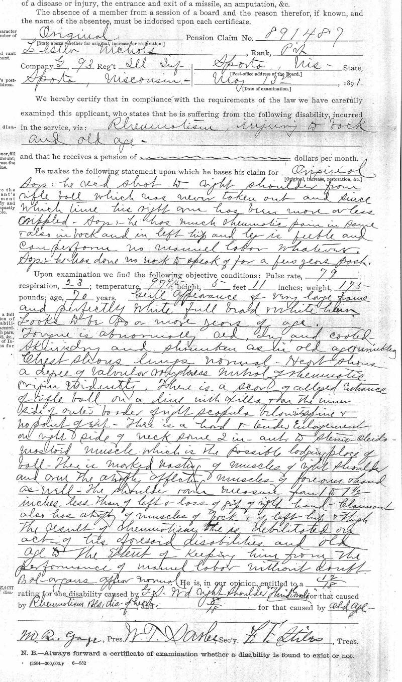 the time of the 1890 Veterans Census. July 19th of that same year, he