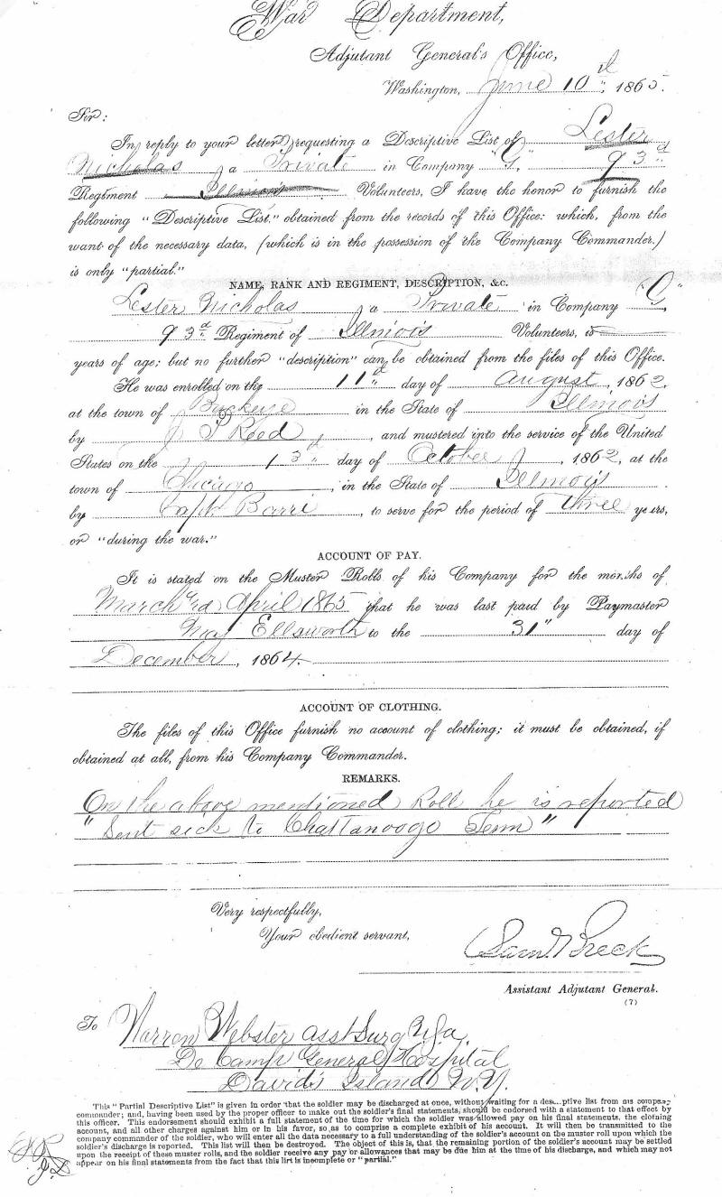 LA on July 1, 1864. Meacham joined at Monroe, Green Co., WI. It should