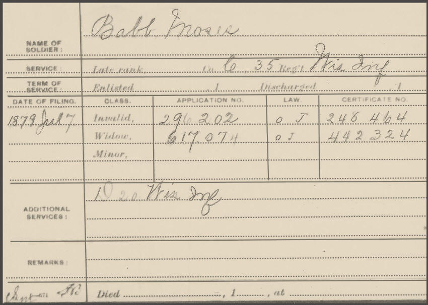 Bio: Babb, Moses, Civil War Soldier (1822/24 - 2 Jun 1895)