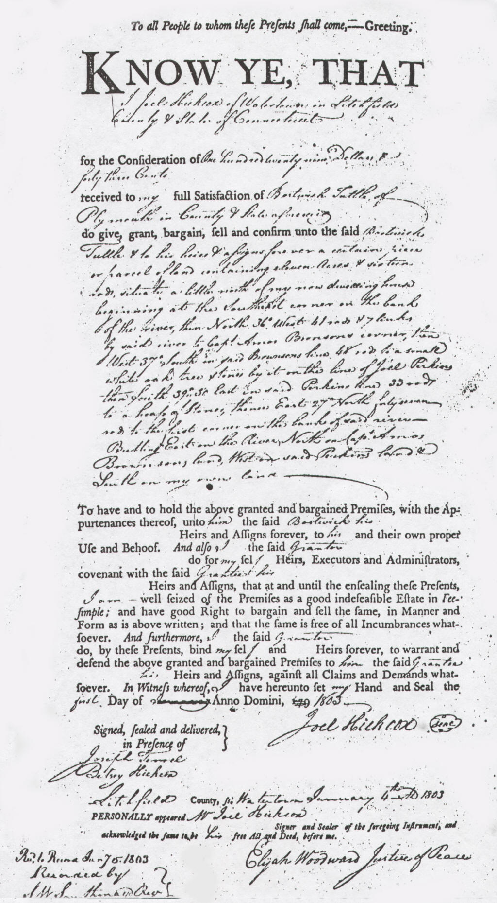 Plymouth, Litchfield County, Connecticut, August 18, 1789. The product of young love, he was