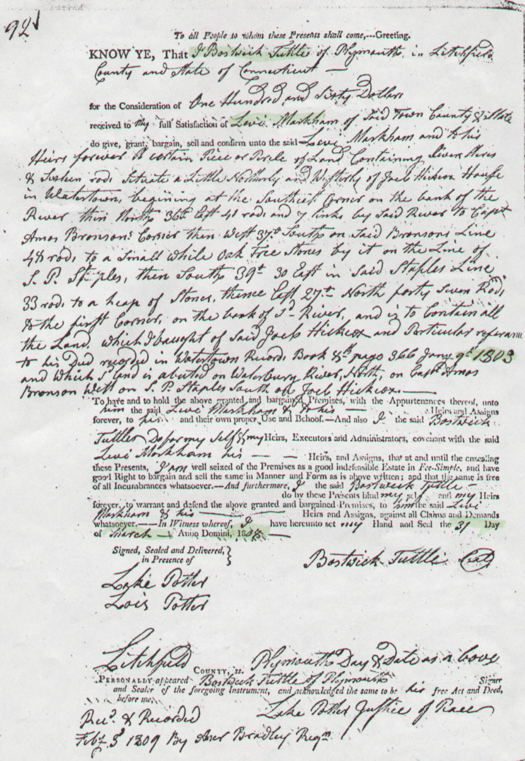 My purpose in writing is to confirm the above and determine if there are any relevant land records or wills associated to Bostwick and Luannie. Any assistance/direction would be greatly appreciated.