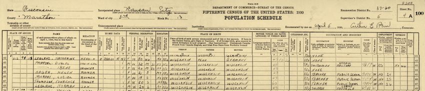 1930 United States Census, Murry, Rusk, Wisconsin, United States